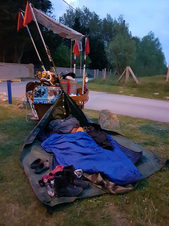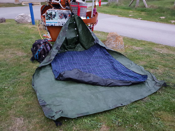 sol en polyéthylène. Deux couvertures polaires. Une couverture en laine de la Légion norvégienne