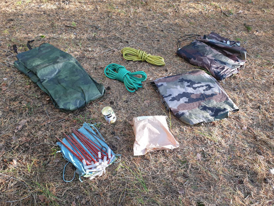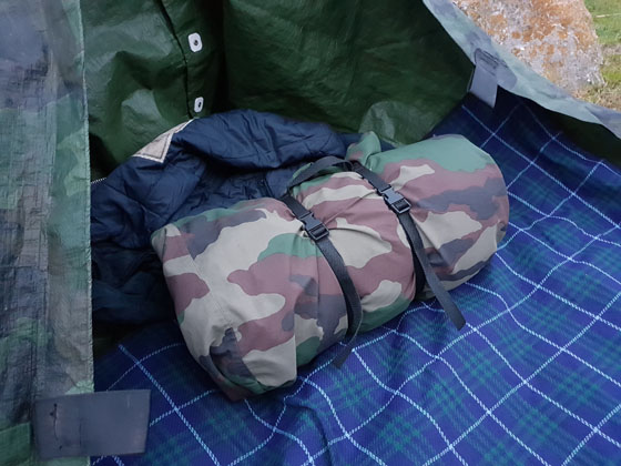 par fortes pluies. Un sac de couchage de commandos marines. Un tapis de