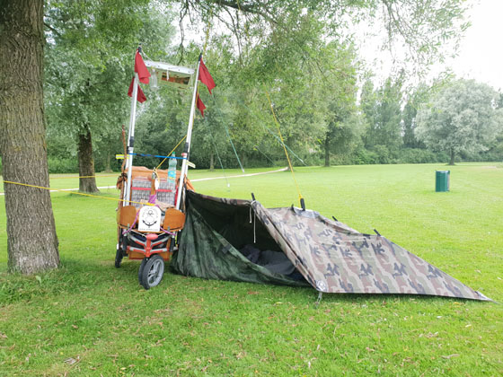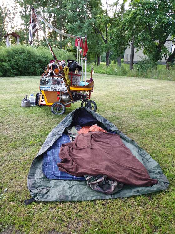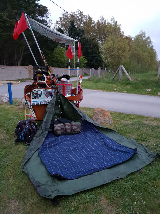 Dormir en chemin en bivouaquant où c'est possible sans déranger tout en s'assurant d'être en sécurité. La règle de base est de s'installer