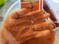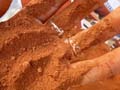 prélèvements d’un beau sable, l’un rouge, l’autre jaune,