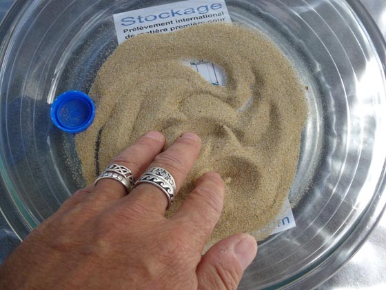 Sable collecté par Philippe Benchernine et Éliane Carlo, sur la plage du