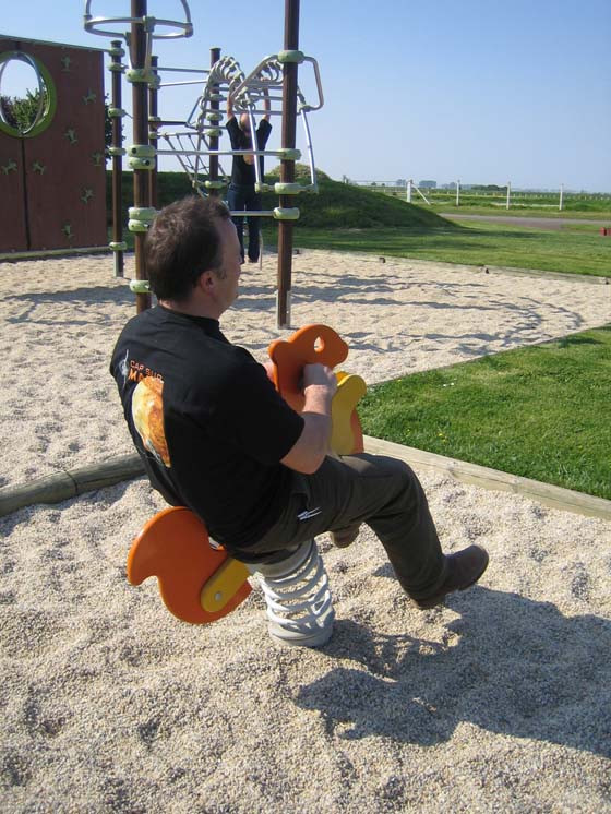 L'architecte Olivier Walter en pleine concentration. -- "Olivier, le cheval à bascule, c'est un truc que tu